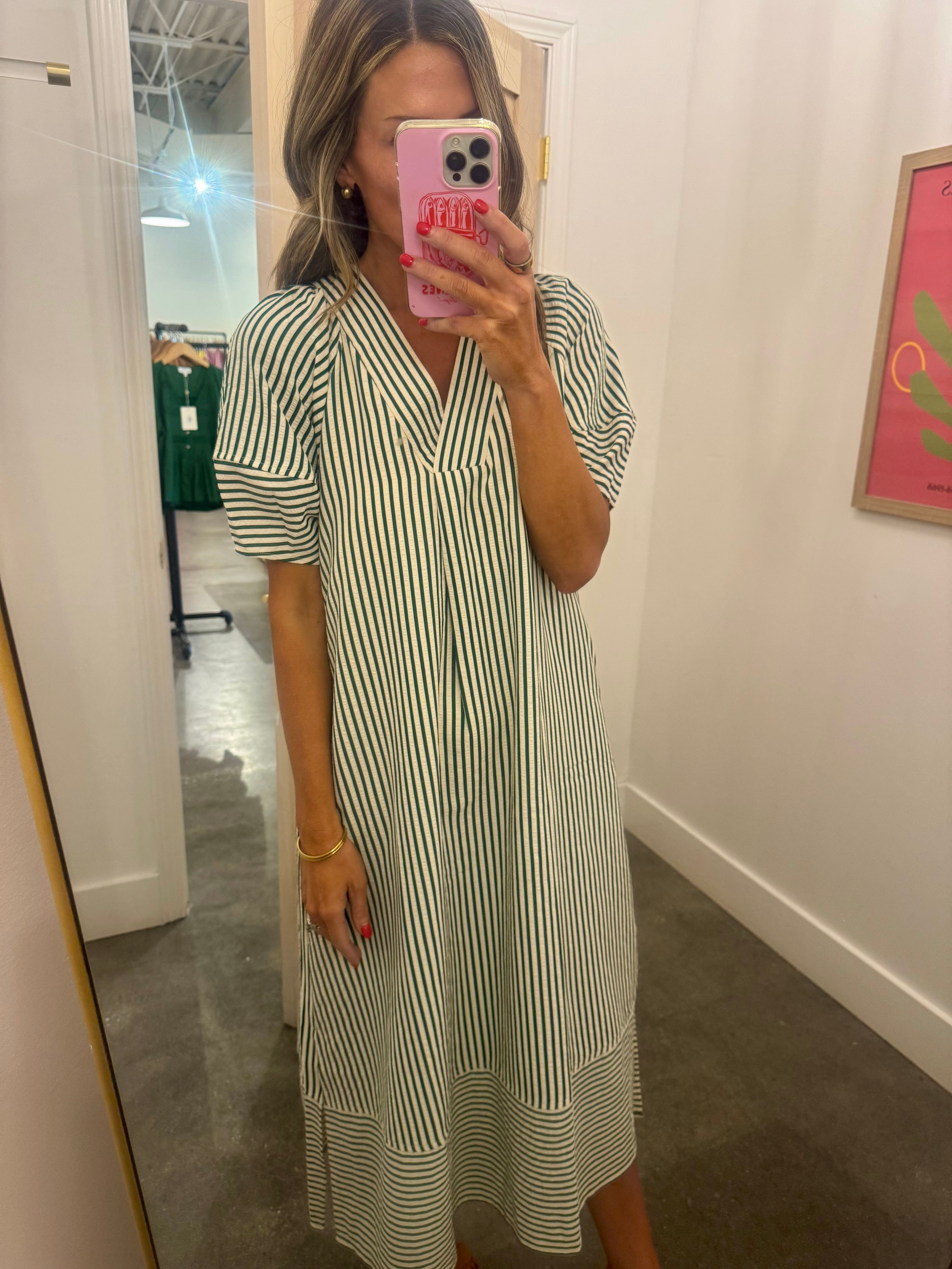 Stripe v neck, stripe puff sleeve. Wearing the small.