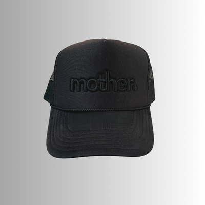 "mother." Embroidered Trucker Hat - Black on Black