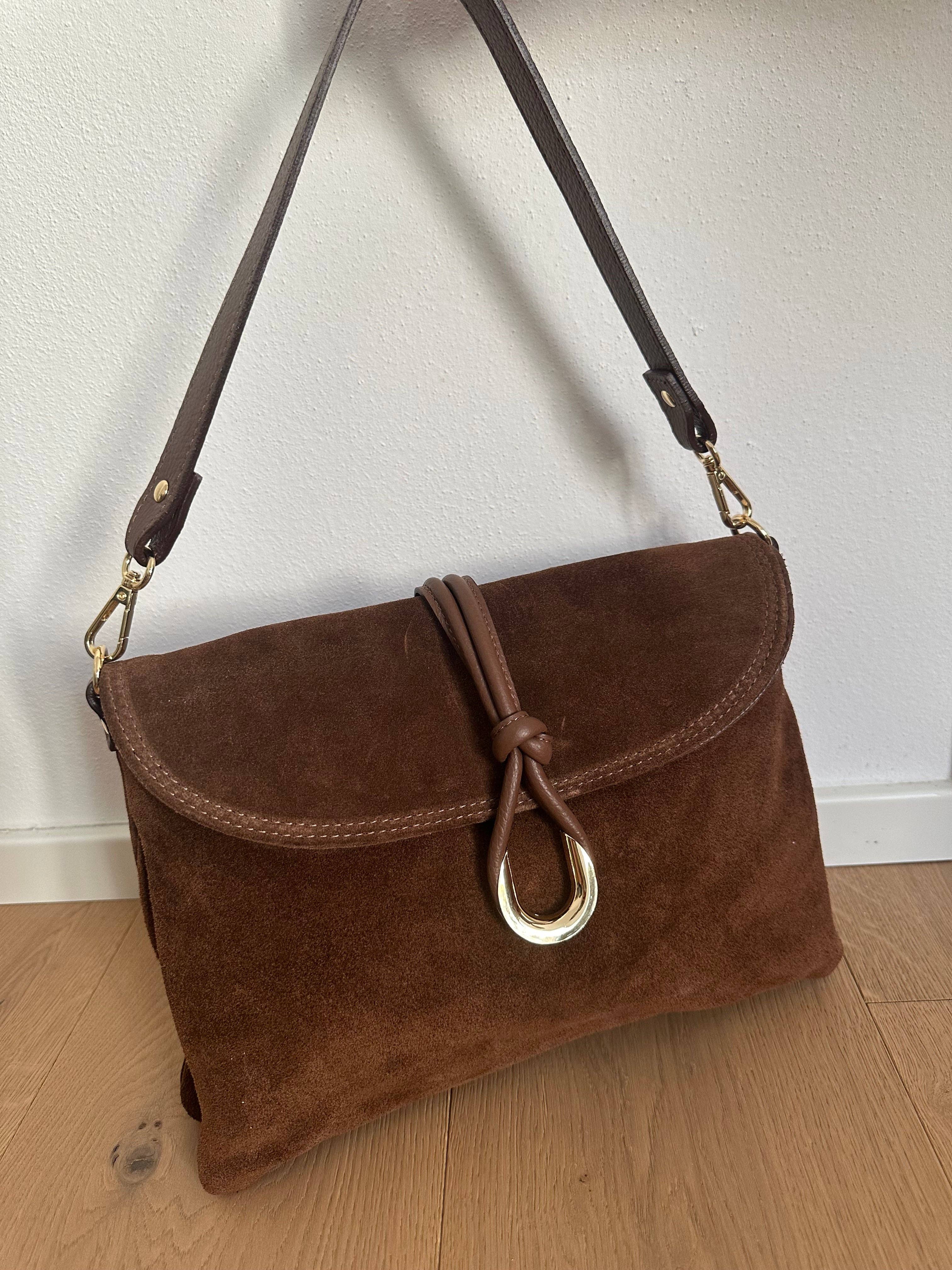 Our new it bag of the season! Matilde Clutch bag, convertible with long crossbody strap and shorter shoulder strap. genuine suede leather handmade, Made in Italy.