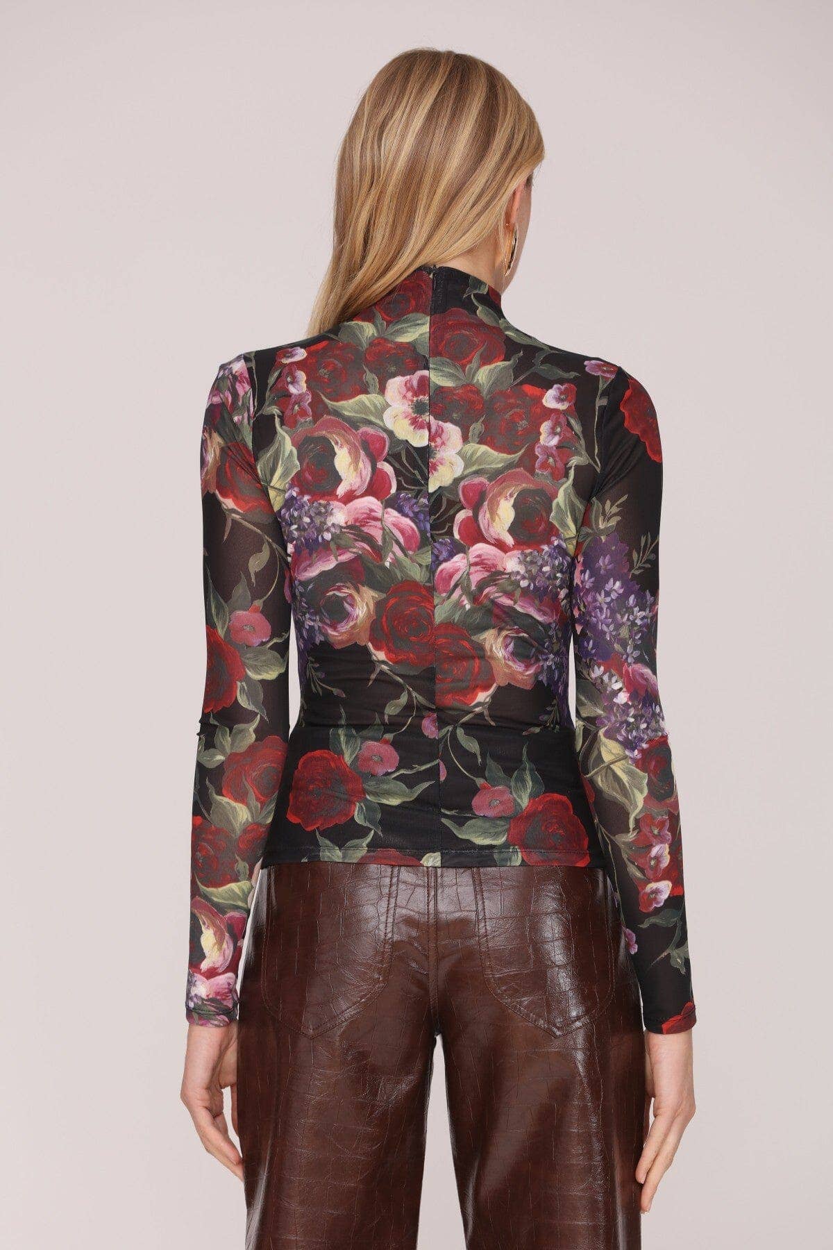 Evoking a moody floral moment, this sheer mockneck top is cast in a dramatic rose-and-garden print that layers effortlessly under tailoring or stands alone for statement evenings. With its sleek fit and sheer finish, it blends romance with edge.