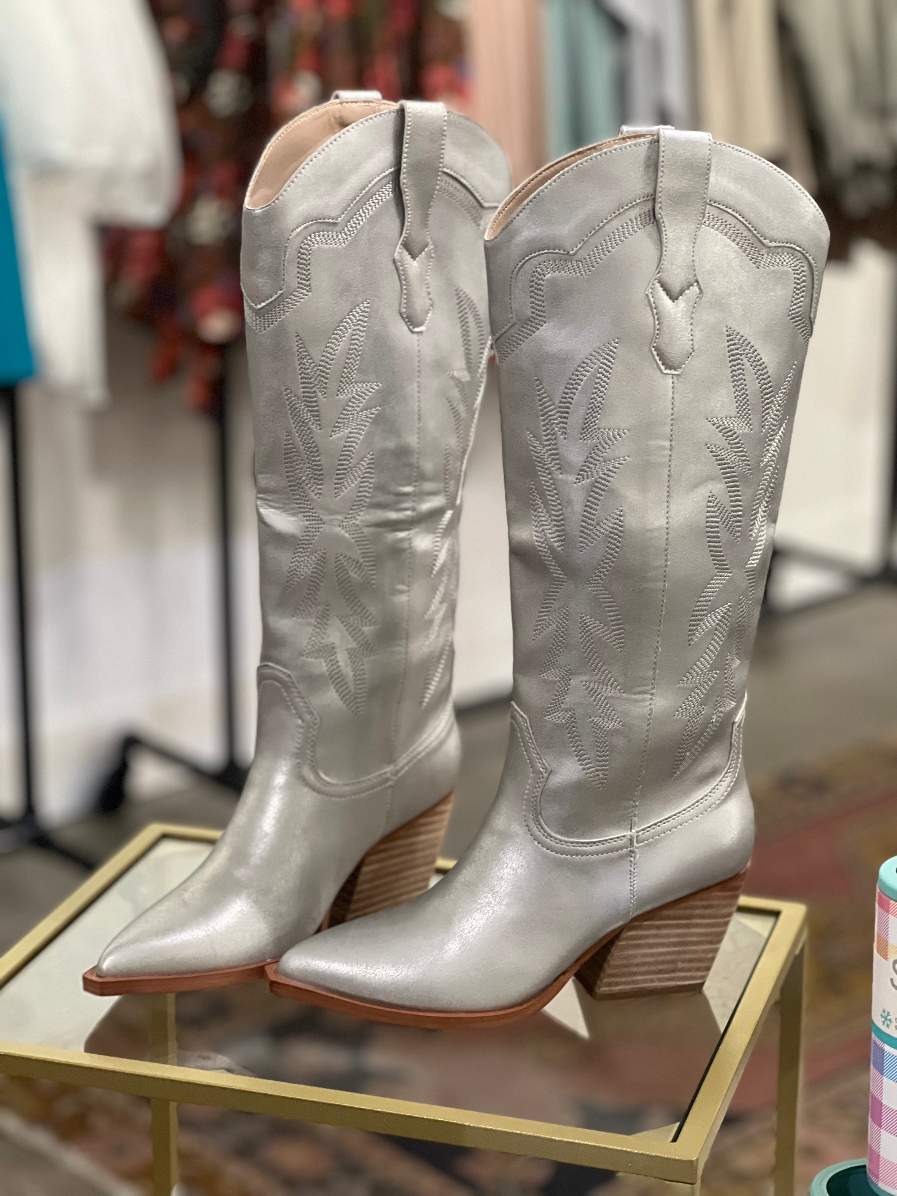 Silver western boot
